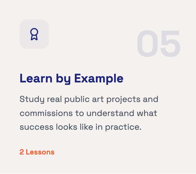 Six structured modules that take you from understanding public art fundamentals to landing and completing real commissions.